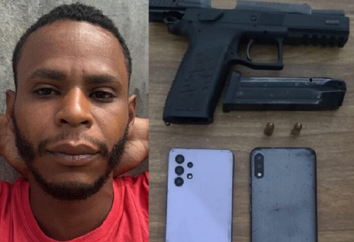 Durante a ação, foram apreendidos uma pistola CZ calibre 9mm, um carregador com duas munições intactas, 22 buchas de substância análoga à maconha e dois aparelhos celulares. Todo o material foi apresentado na delegacia para os procedimentos legais.